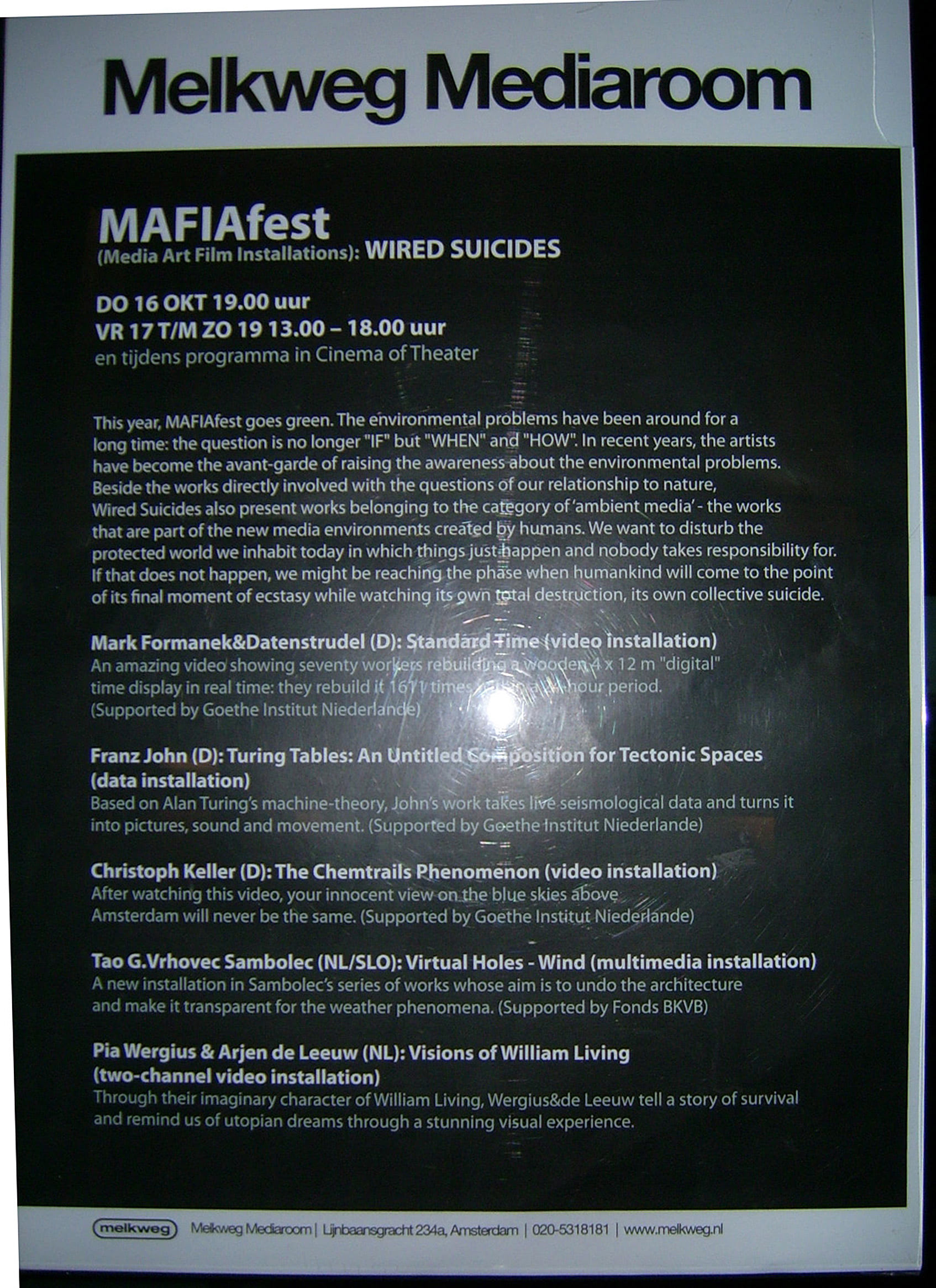 Turing Tables Melkweg Amsterdam, 2007 MAFIAfest „Wired Suicides” 16. Okt. - 19.Okt. 2007 Ausstellungen Exhibitions 2007 Edith-Russ-Haus für Medienkust, Oldenburg, DEMelkweg, Amsterdam, NL
